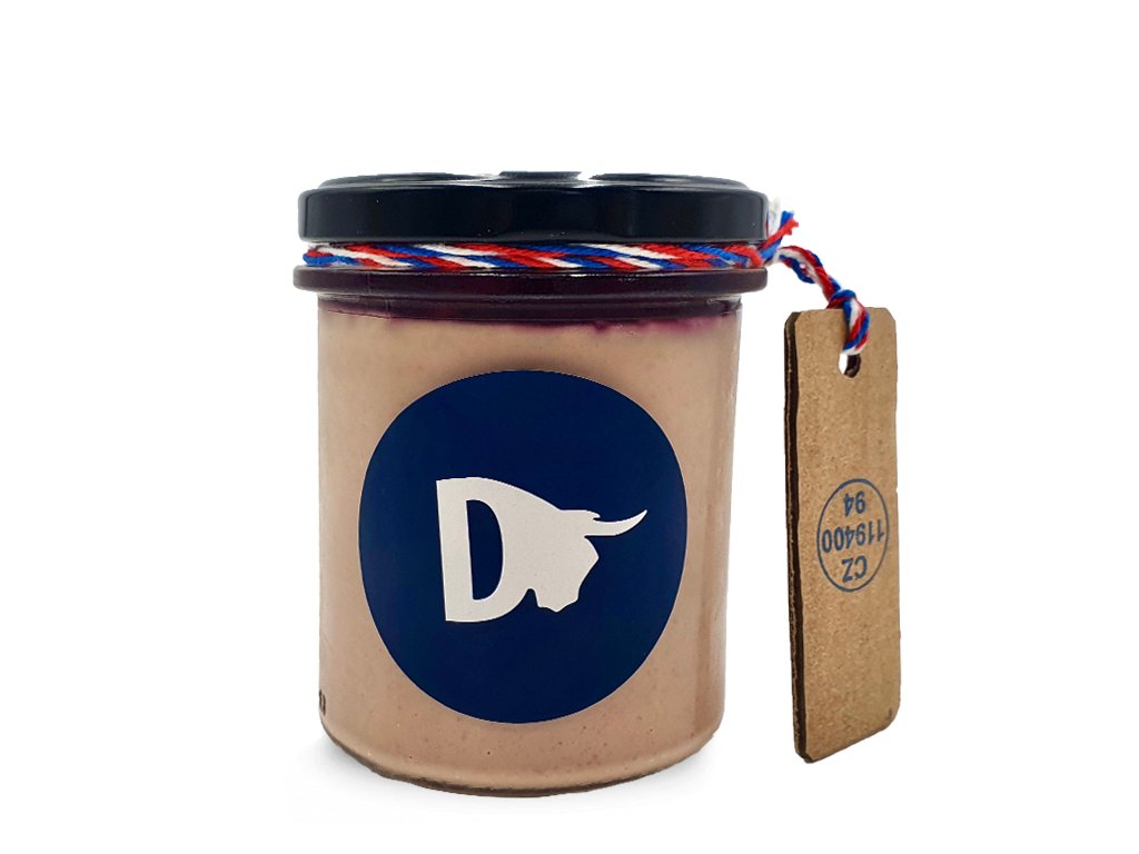 Složení: králičí játra, máslo, šalotka, smetana, napoleon, arónie, sůl, česnek, tymián, cukr, želatina, pepř