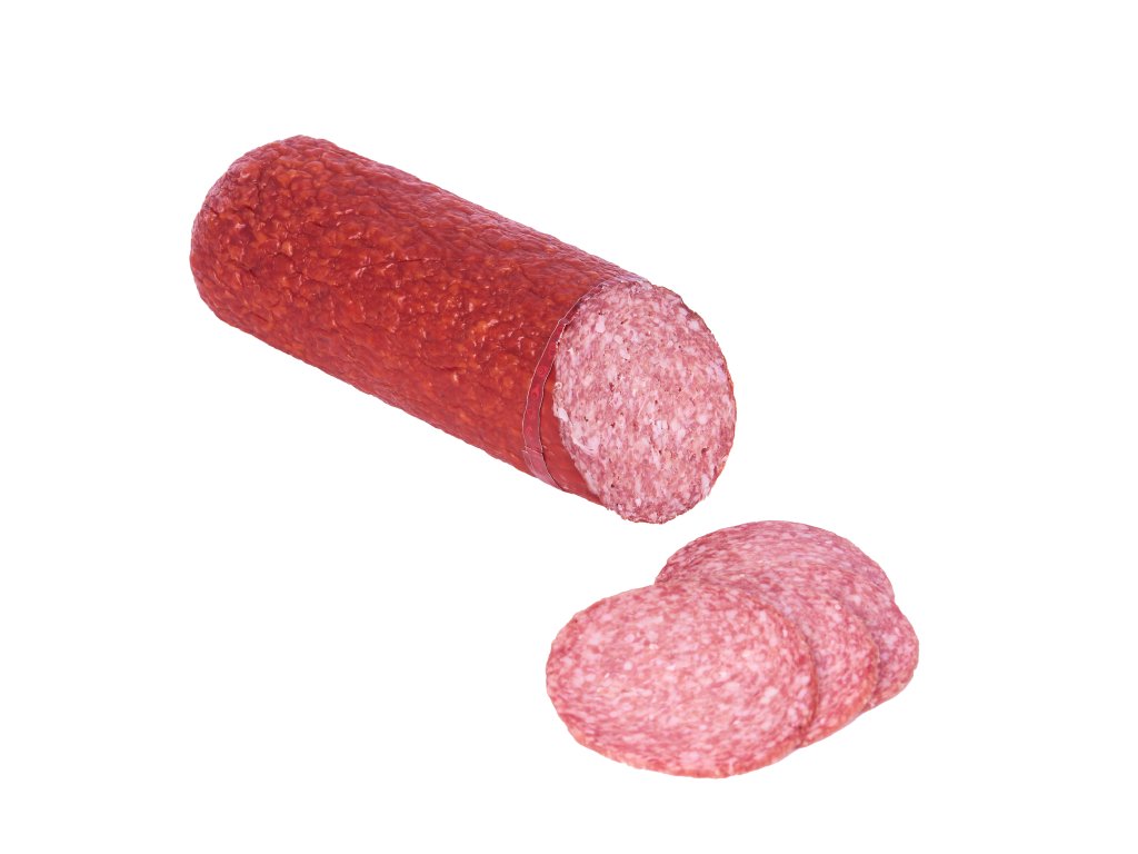 Složení: vepřové maso, vepřové sádlo, hovězí maso, jedlá sůl s jódem, koření, extrakty koření, stabilizátor E250, látka zvýrazňující chuť a vůni E621, dextróza, antioxidanty E300, E301, barvivo E120, startovací kultura. Obsah jedlé soli max 4,2%, obsah tuku max.50%.