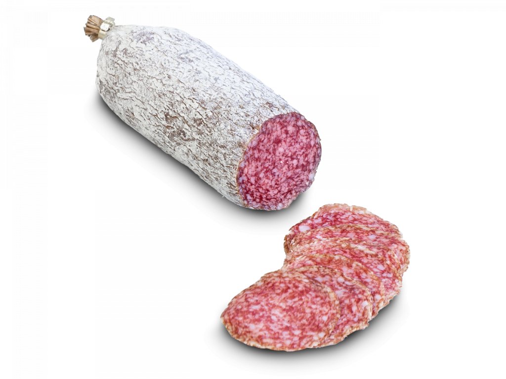 Složení: vepřové maso, vepřové sádlo, jedlá sůl, koření, cukr, konzervant E 250, 100 g výrobku bylo vyrobeno ze 159 g masa.